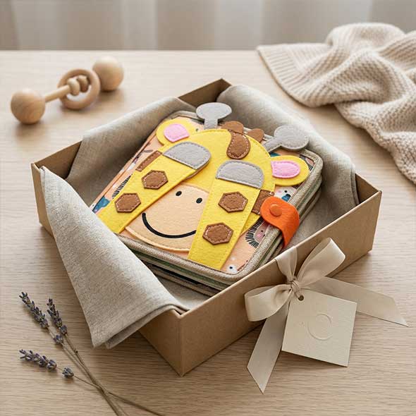 Le Livre d’Activités Montessori en Feutre transforme chaque page en petite découverte. L’enfant manipule des formes, des éléments en feutre et des textures différentes qui stimulent naturellement sa curiosité. Chaque activité encourage l’exploration et l’apprentissage par le jeu.